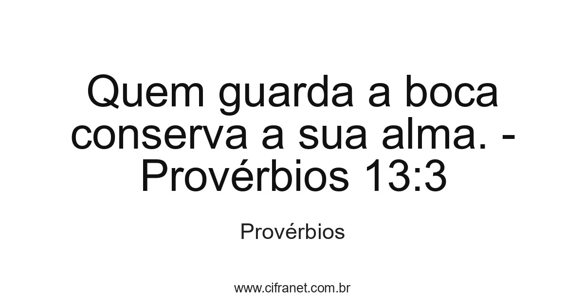 Quem guarda a boca conserva a sua alma. - Provérbios 13:3
