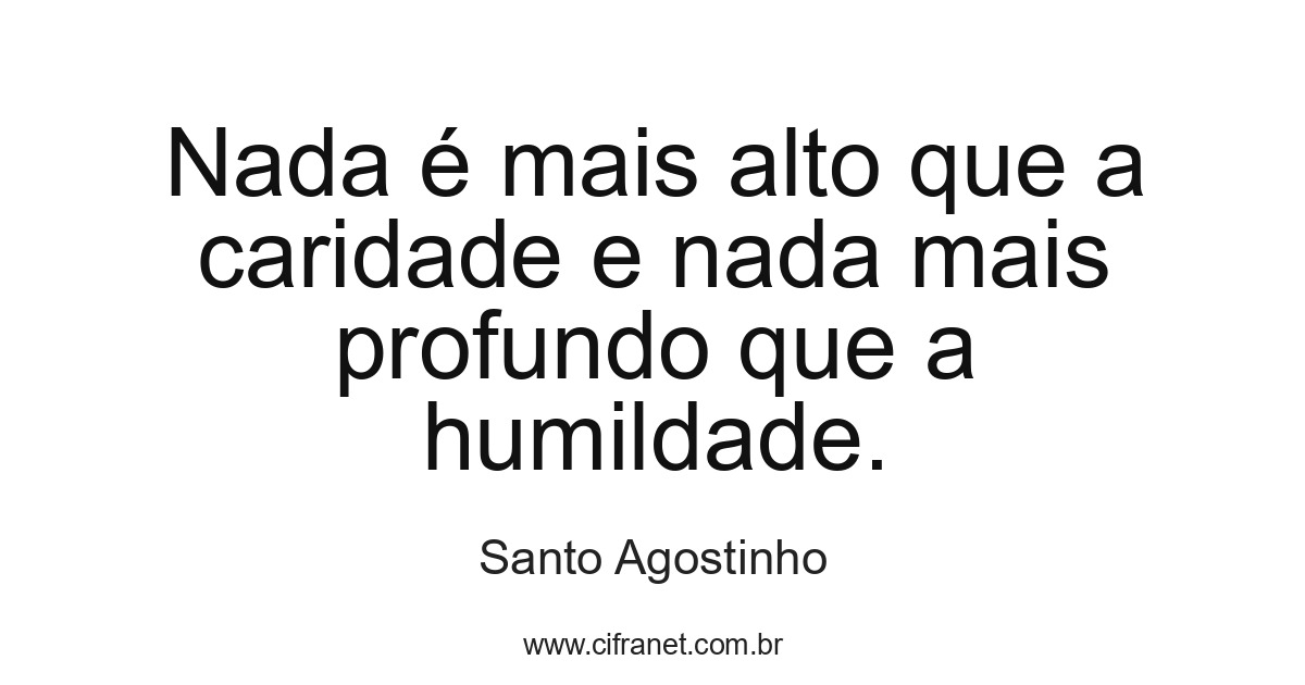 Nada é mais alto que a caridade e nada mais profundo que a humildade.