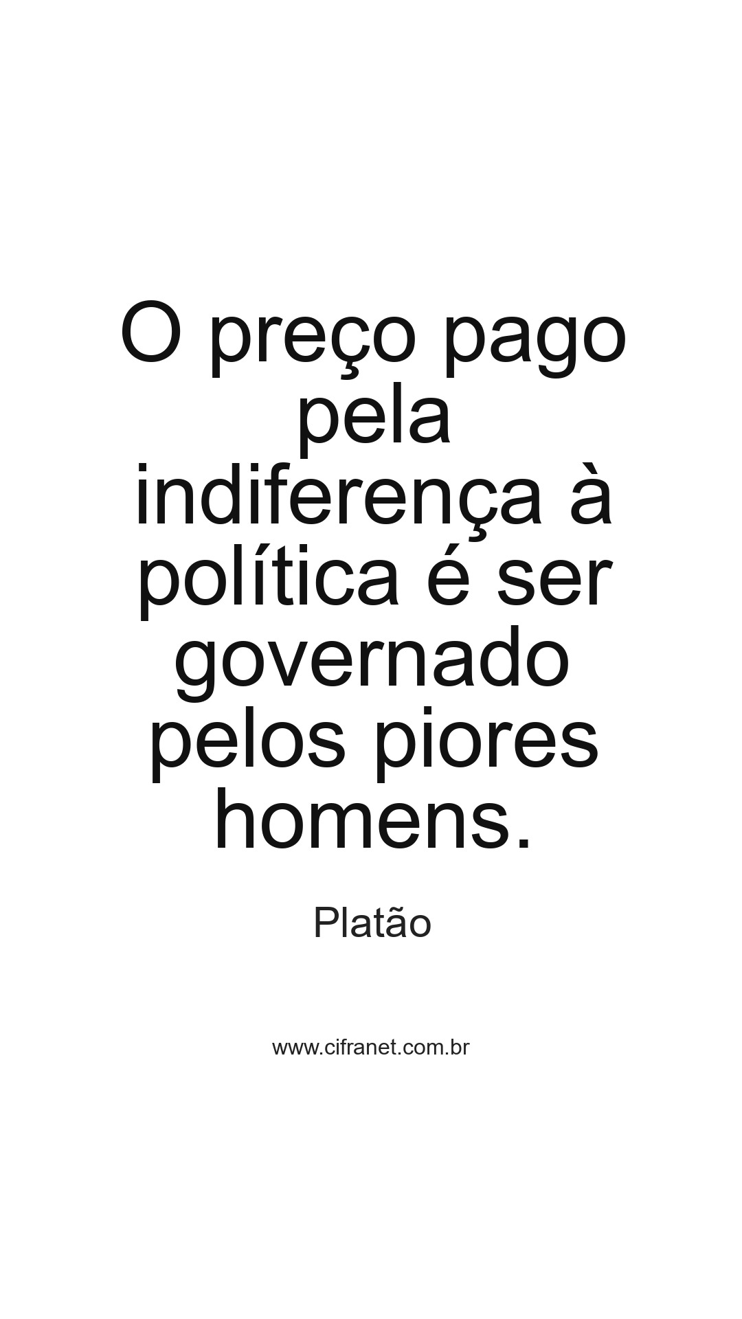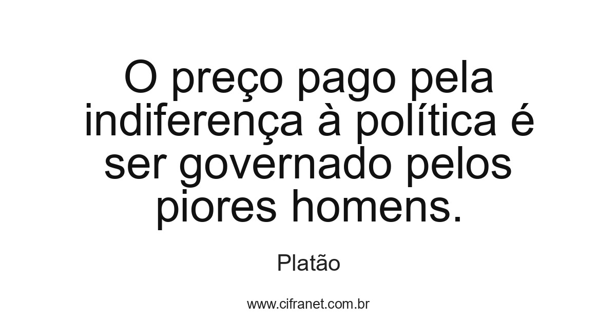 O preço pago pela indiferença à política é ser governado pelos piores homens.