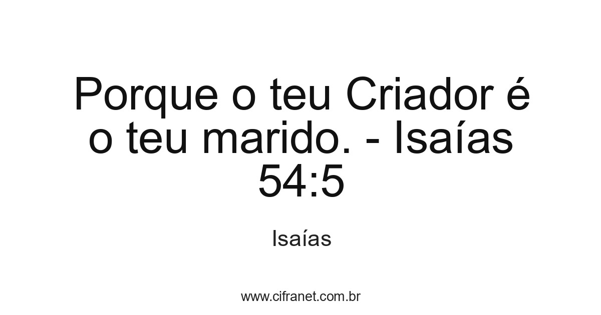 Porque o teu Criador é o teu marido. - Isaías 54:5
