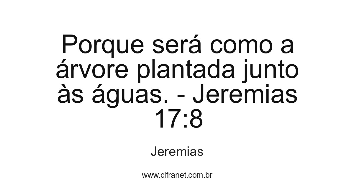 Porque será como a árvore plantada junto às águas. - Jeremias 17:8