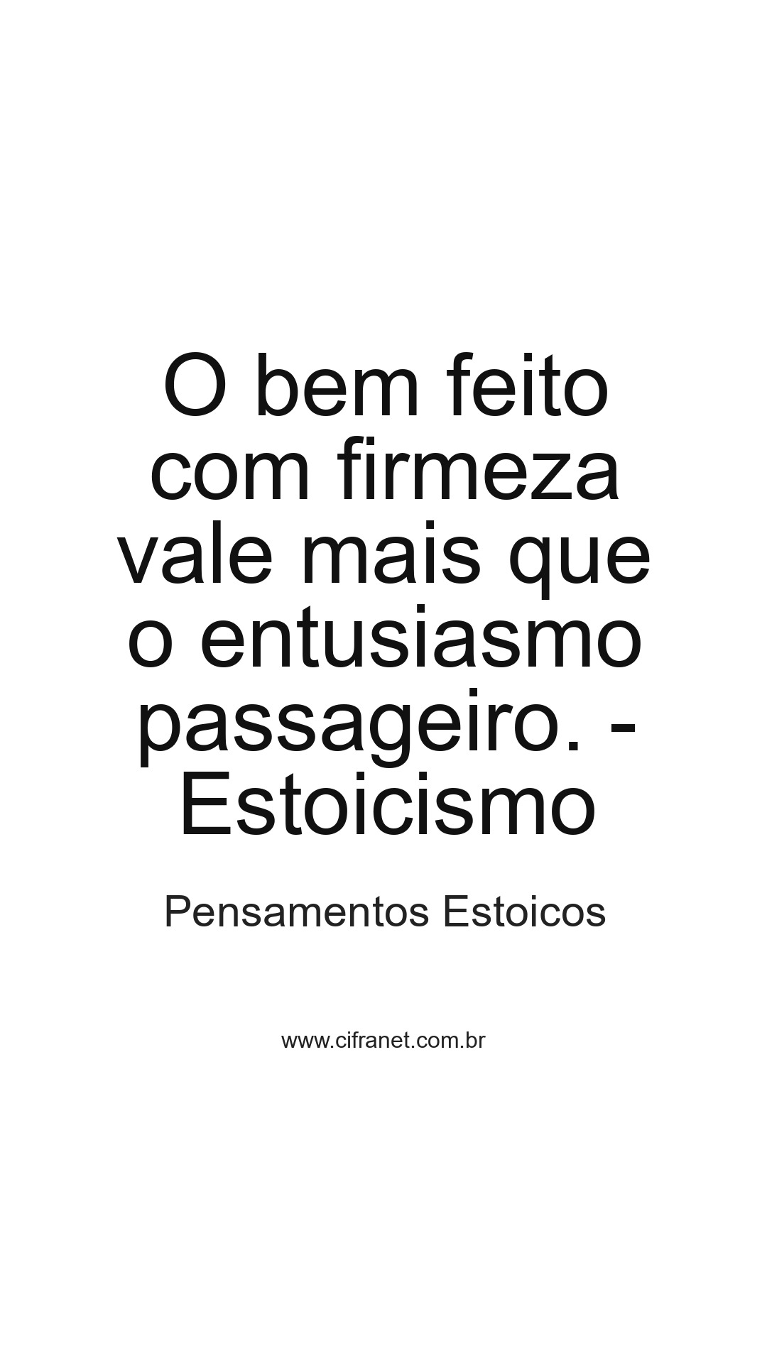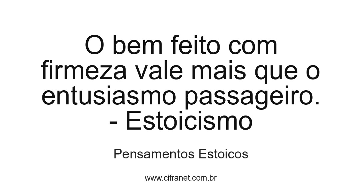 O bem feito com firmeza vale mais que o entusiasmo passageiro. - Estoicismo