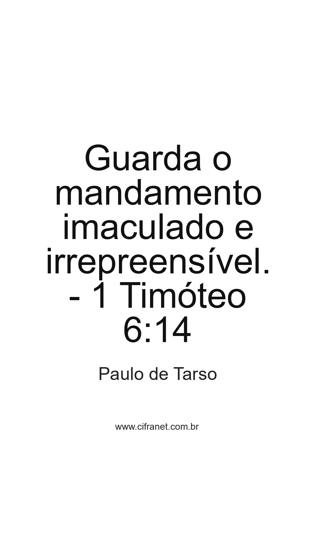 Guarda o mandamento imaculado e irrepreensível. - 1 Timóteo 6:14