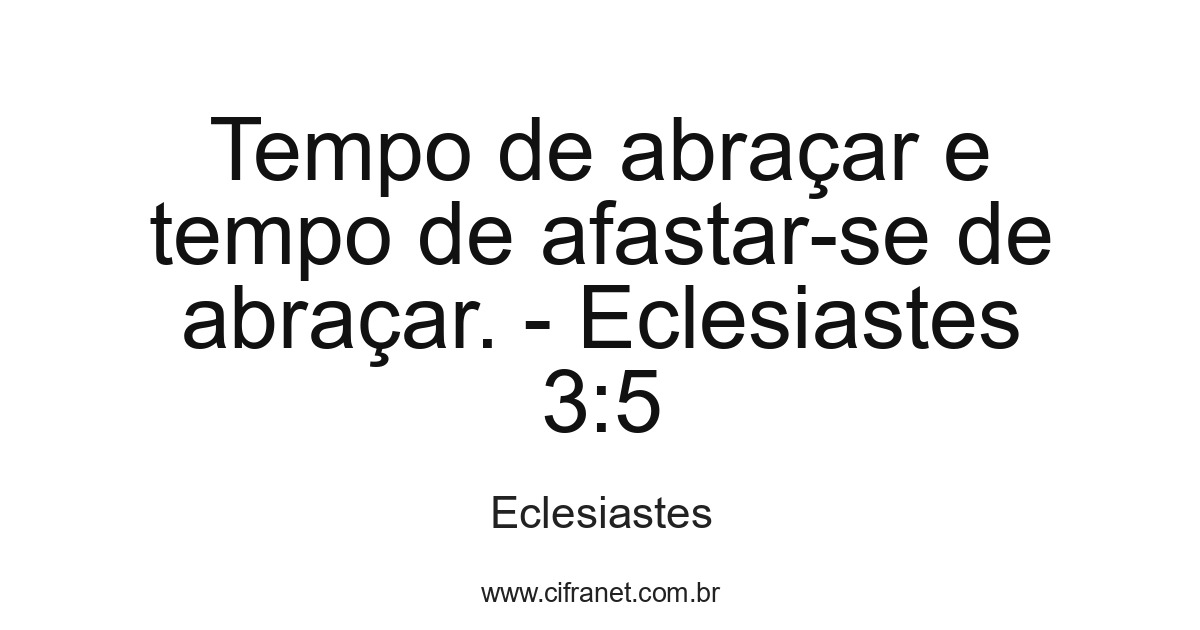 Tempo de abraçar e tempo de afastar-se de abraçar. - Eclesiastes 3:5