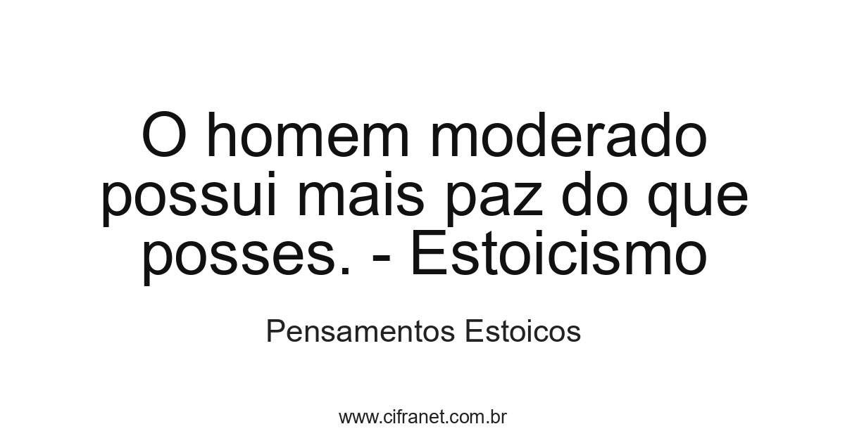 O homem moderado possui mais paz do que posses. - Estoicismo