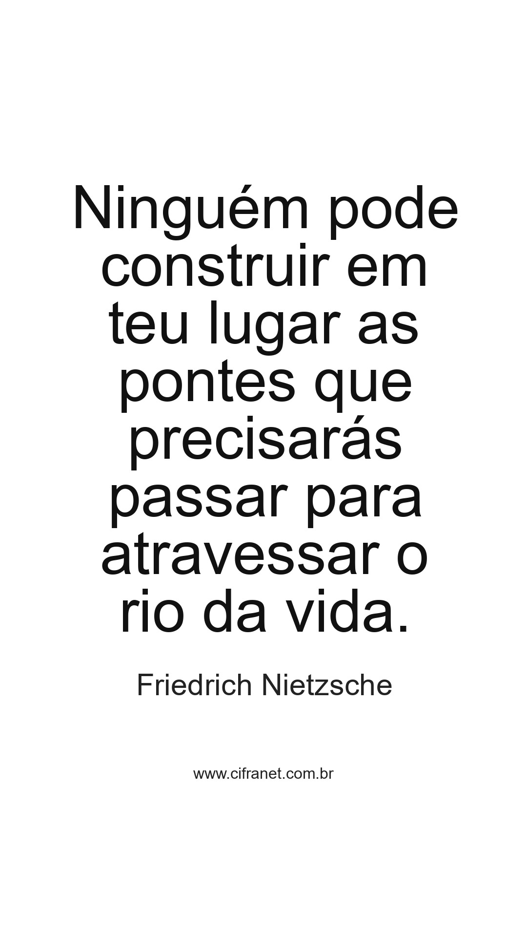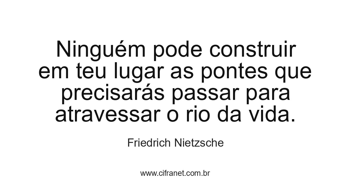 Ninguém pode construir em teu lugar as pontes que precisarás passar para atravessar o rio da vida.