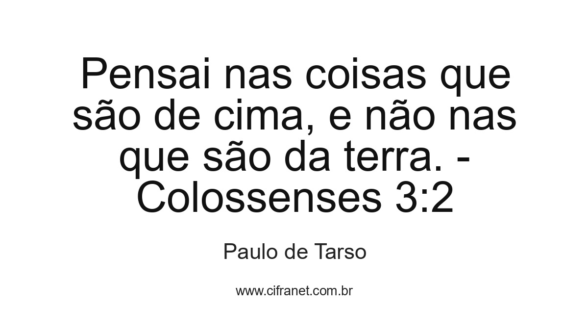 Pensai nas coisas que são de cima, e não nas que são da terra. - Colossenses 3:2