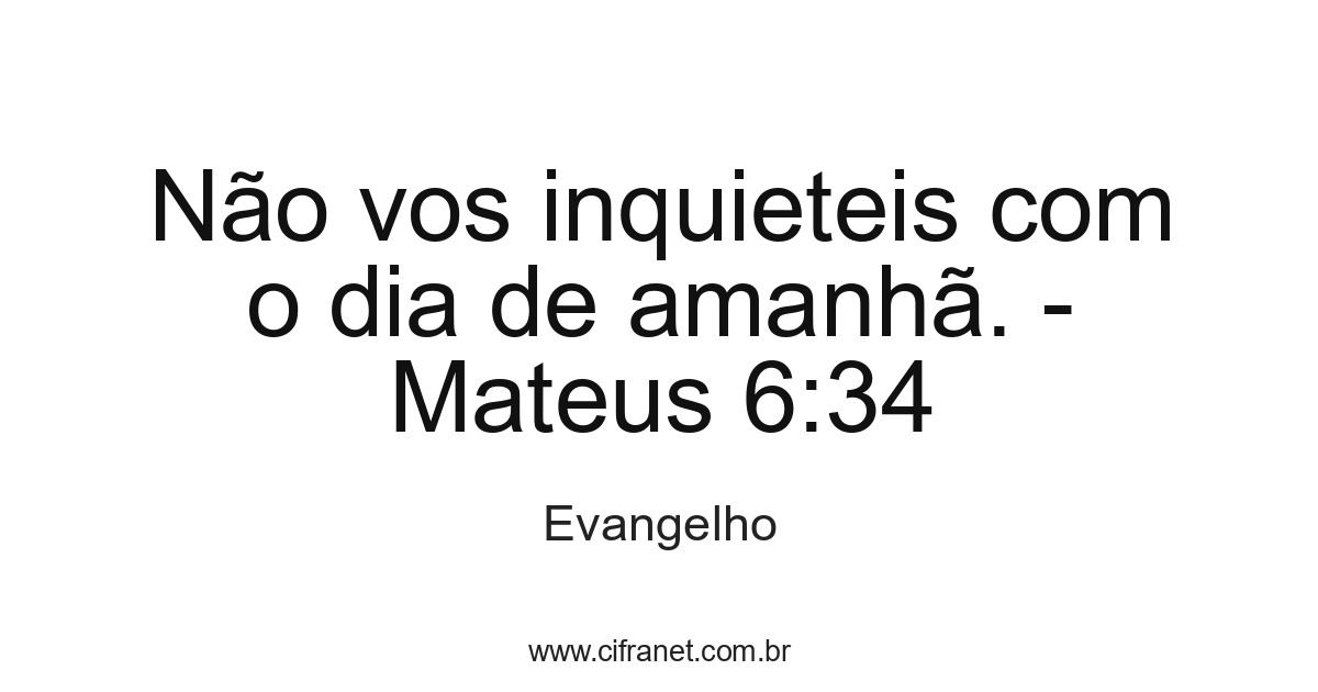 Não vos inquieteis com o dia de amanhã. - Mateus 6:34