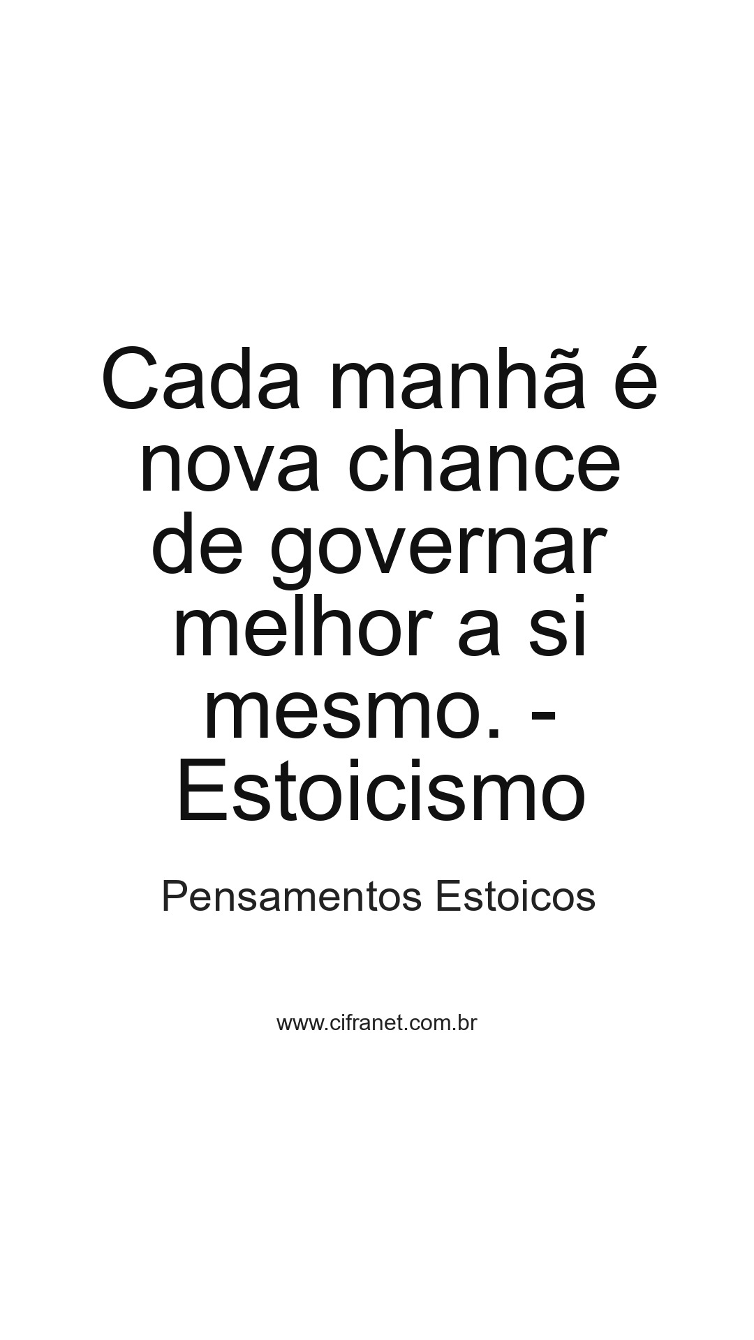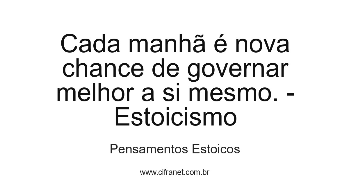 Cada manhã é nova chance de governar melhor a si mesmo. - Estoicismo