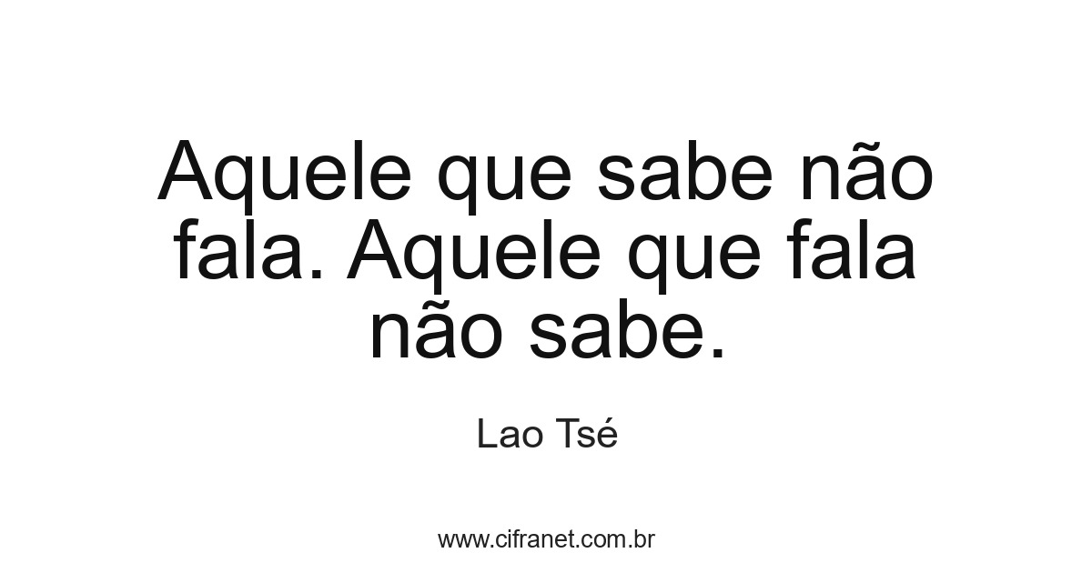 Aquele que sabe não fala. Aquele que fala não sabe.