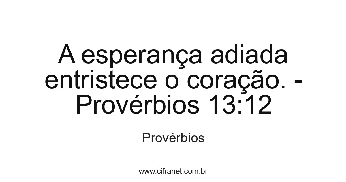 A esperança adiada entristece o coração. - Provérbios 13:12