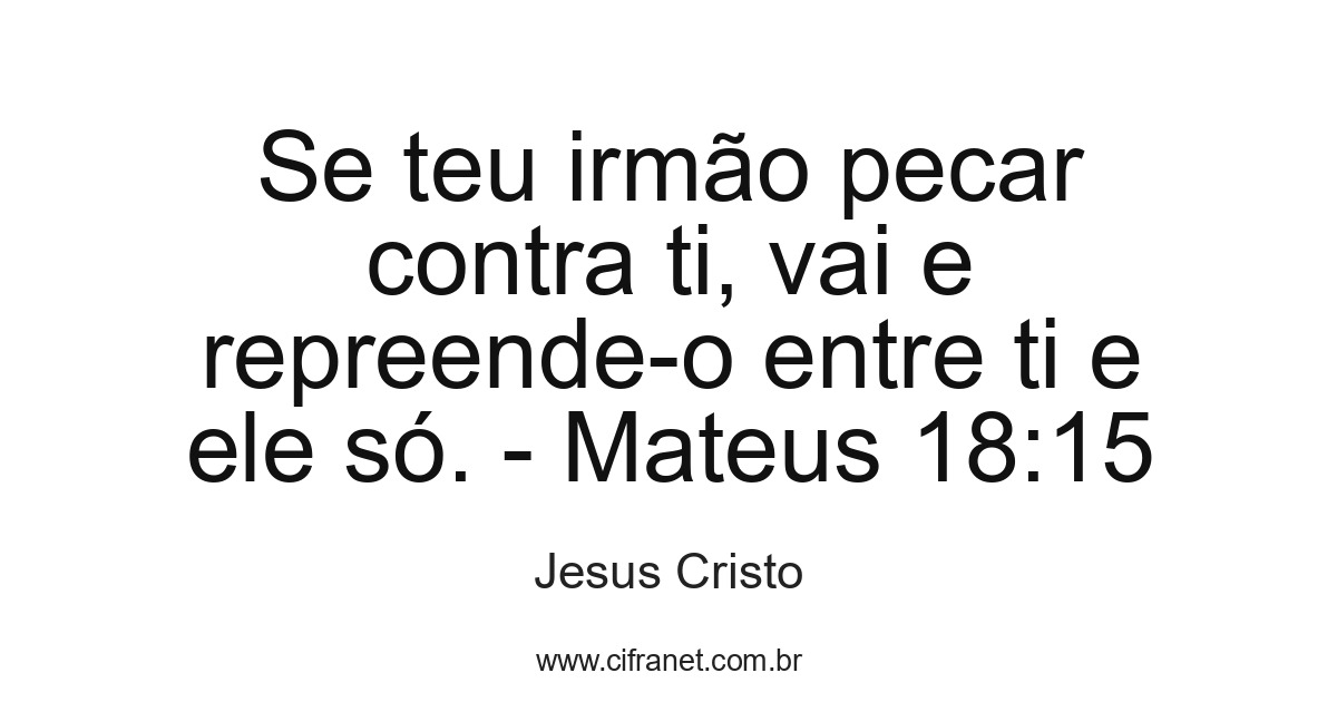 Se teu irmão pecar contra ti, vai e repreende-o entre ti e ele só. - Mateus 18:15
