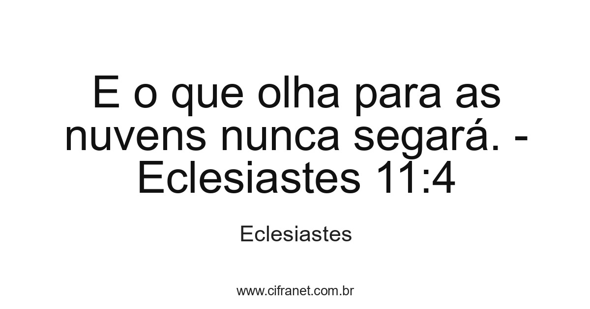 E o que olha para as nuvens nunca segará. - Eclesiastes 11:4