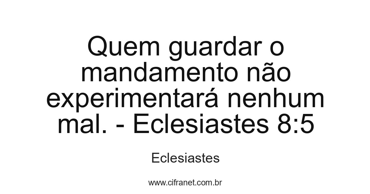 Quem guardar o mandamento não experimentará nenhum mal. - Eclesiastes 8:5