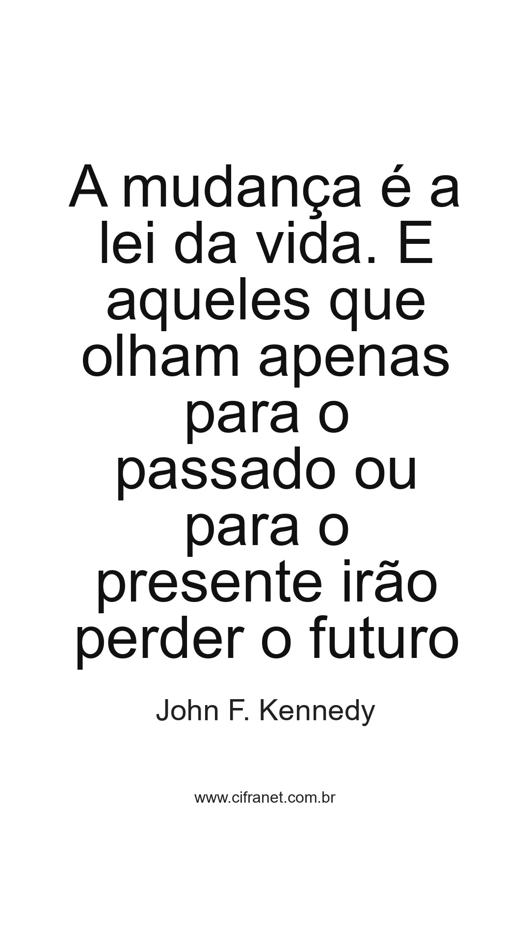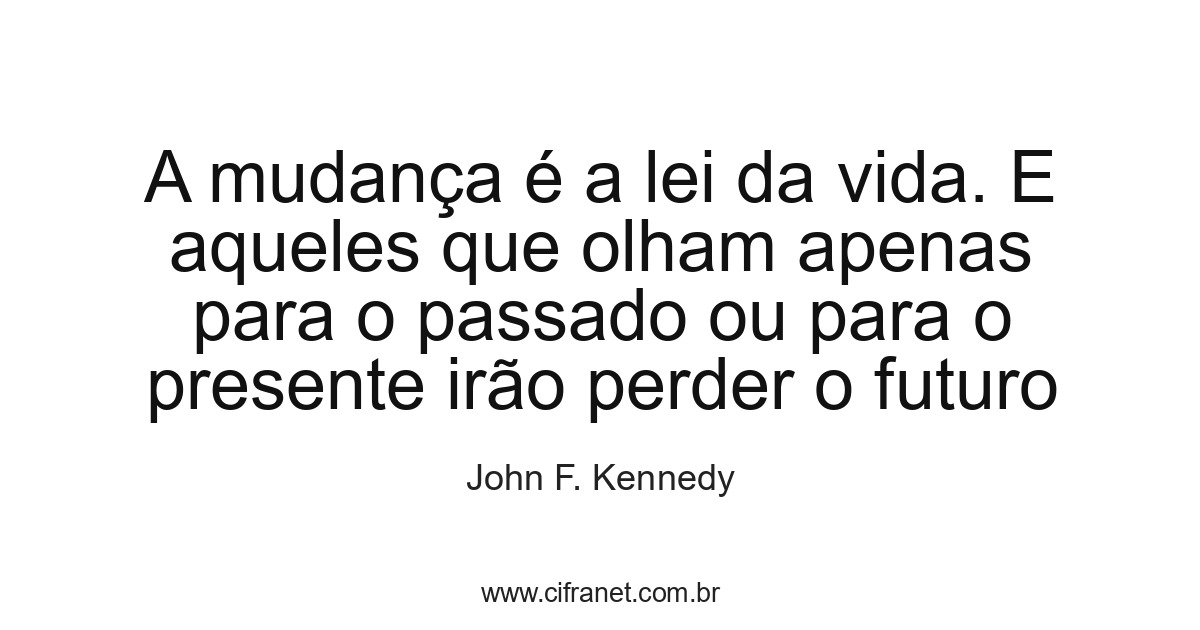 A mudança é a lei da vida. E aqueles que olham apenas para o passado ou para o presente irão perder o futuro