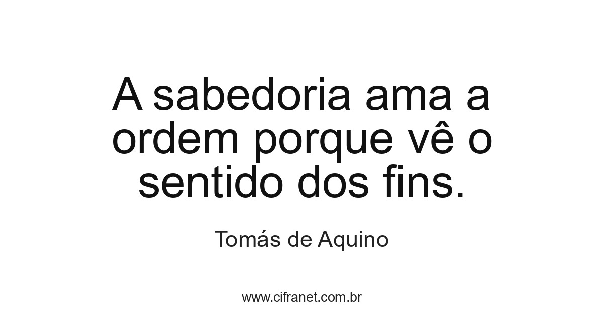 A sabedoria ama a ordem porque vê o sentido dos fins.