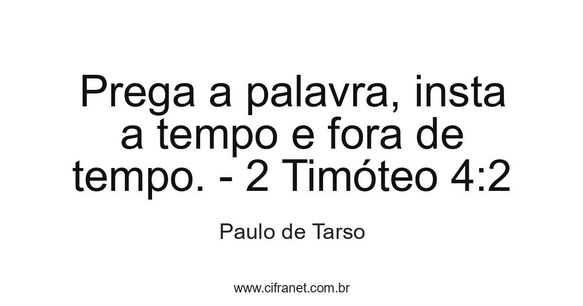 Prega a palavra, insta a tempo e fora de tempo. - 2 Timóteo 4:2