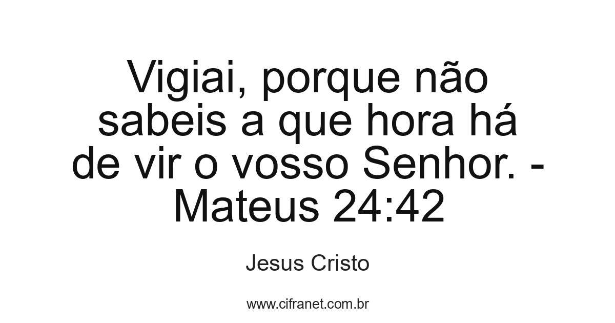 Vigiai, porque não sabeis a que hora há de vir o vosso Senhor. - Mateus 24:42