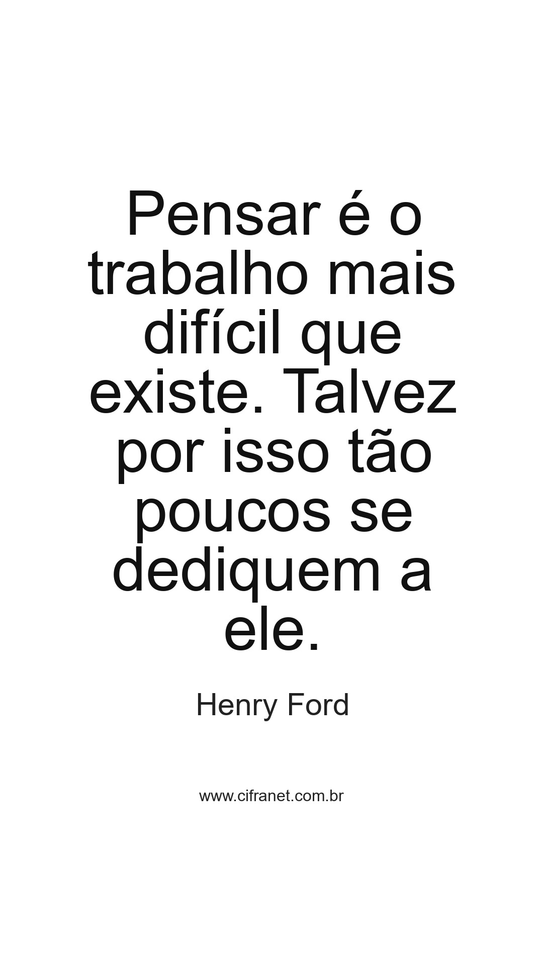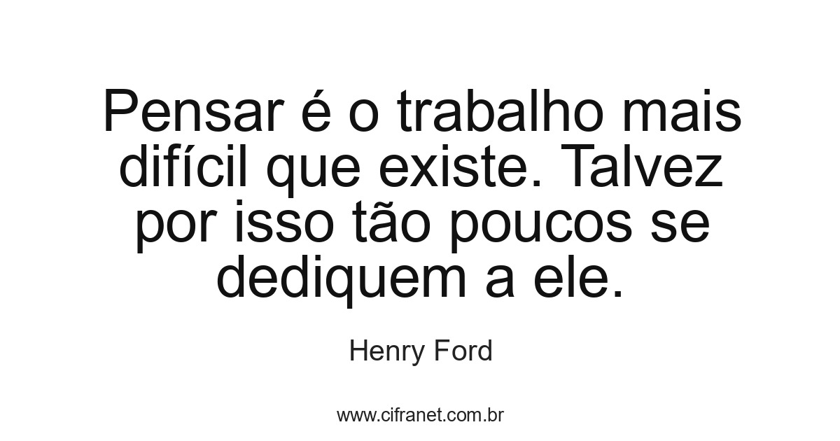 Pensar é o trabalho mais difícil que existe. Talvez por isso tão poucos se dediquem a ele.