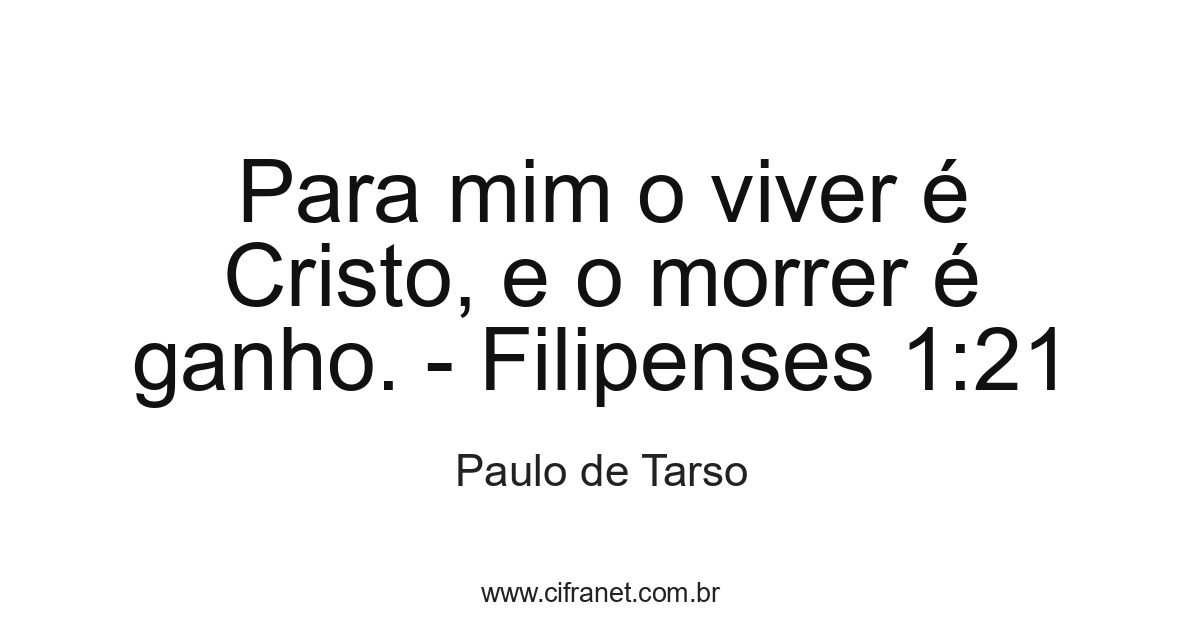 Para mim o viver é Cristo, e o morrer é ganho. - Filipenses 1:21