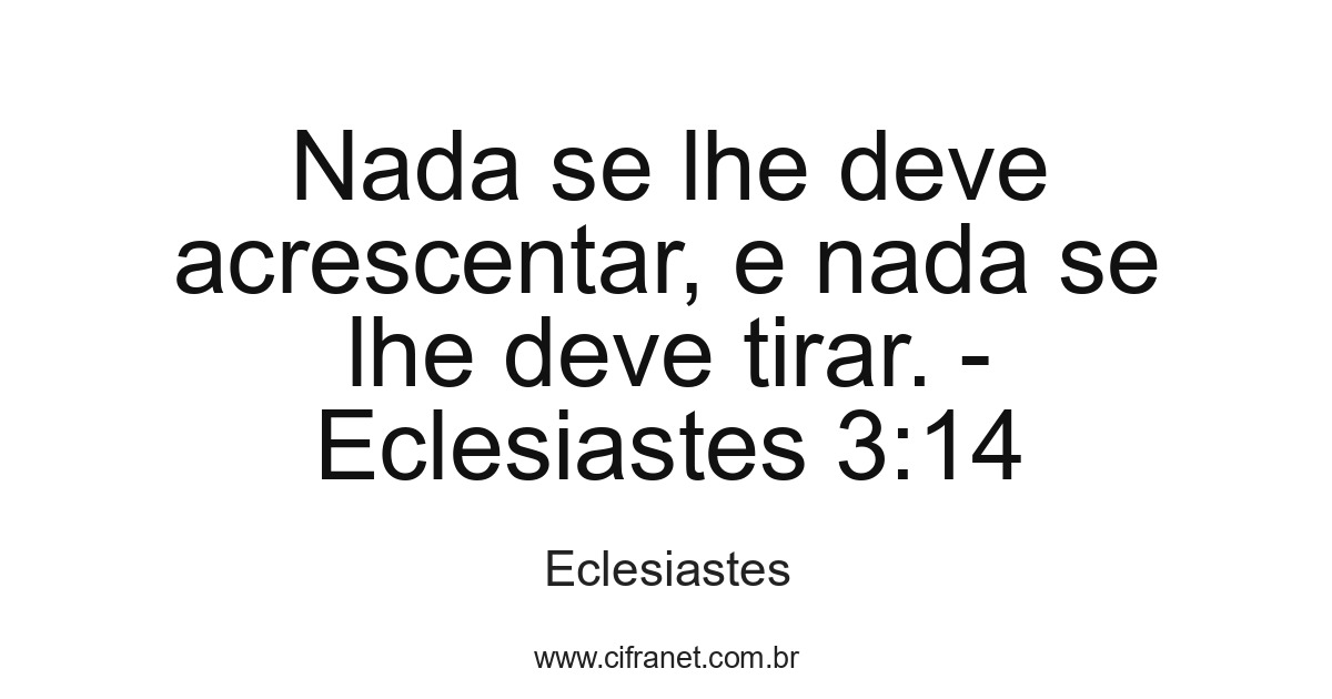Nada se lhe deve acrescentar, e nada se lhe deve tirar. - Eclesiastes 3:14