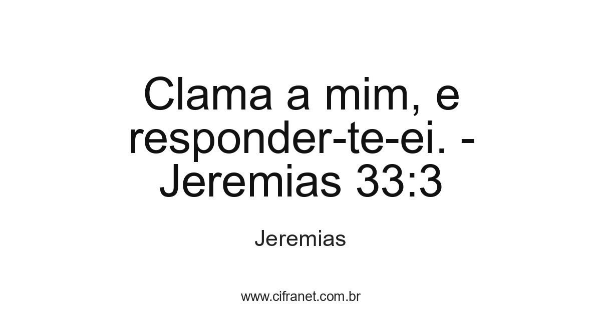 Clama a mim, e responder-te-ei. - Jeremias 33:3
