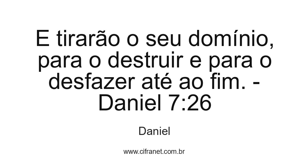 E tirarão o seu domínio, para o destruir e para o desfazer até ao fim. - Daniel 7:26