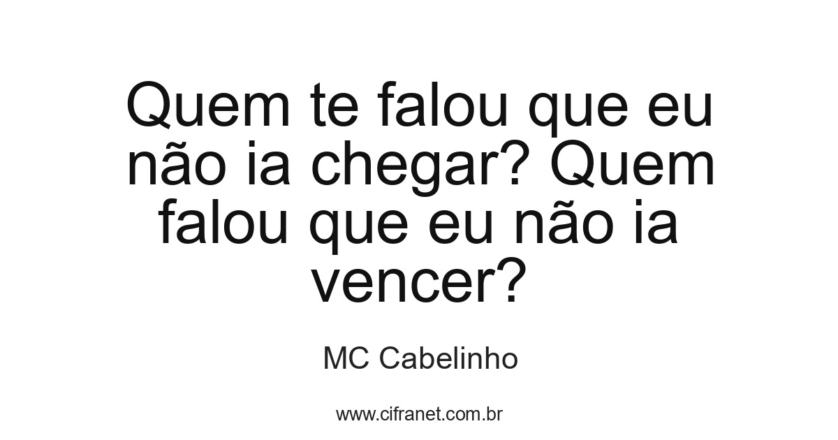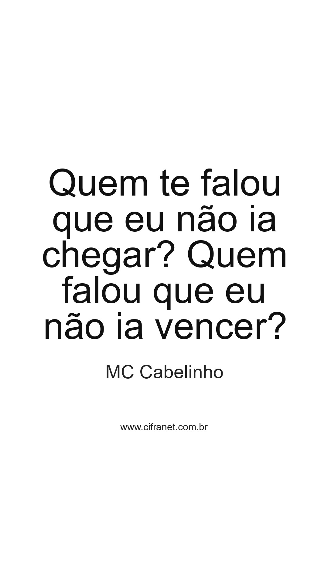 Quem te falou que eu não ia chegar? Quem falou que eu não ia vencer?