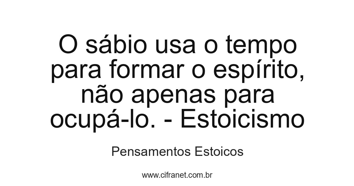 O sábio usa o tempo para formar o espírito, não apenas para ocupá-lo. - Estoicismo