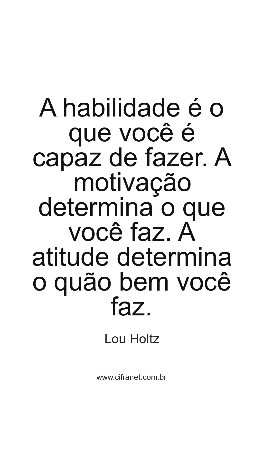A habilidade é o que você é capaz de fazer. A motivação determina o que você faz. A atitude determina o quão bem você faz.
