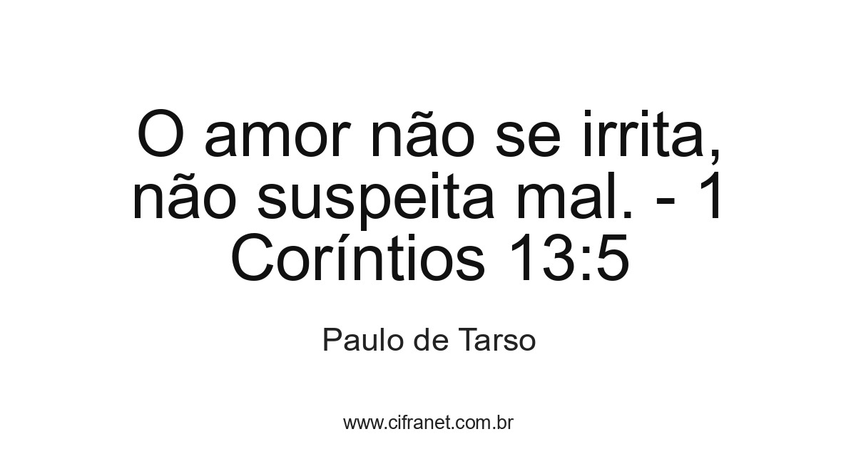 O amor não se irrita, não suspeita mal. - 1 Coríntios 13:5