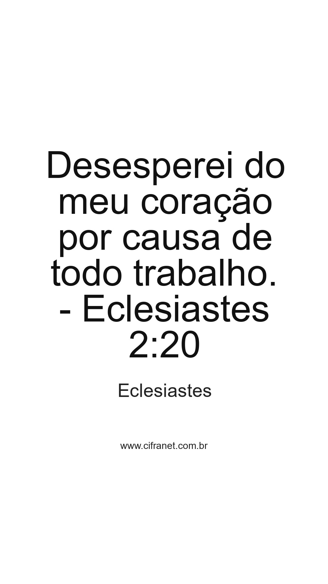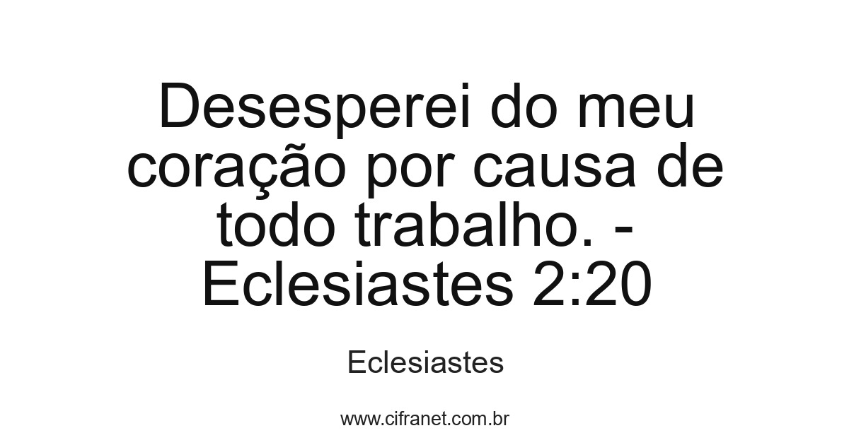 Desesperei do meu coração por causa de todo trabalho. - Eclesiastes 2:20