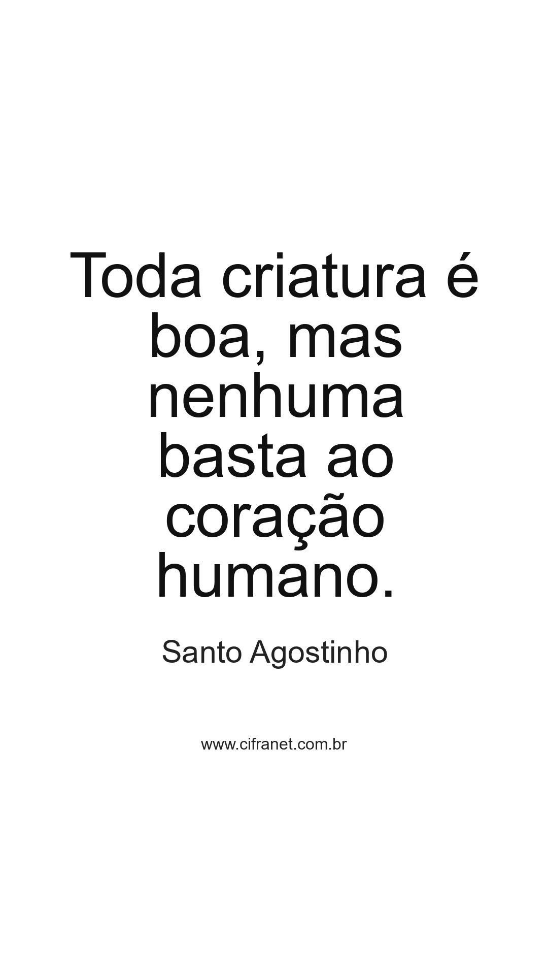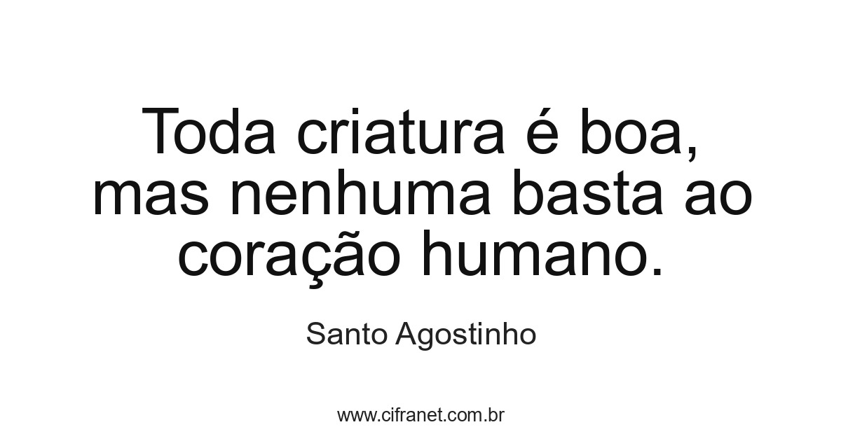 Toda criatura é boa, mas nenhuma basta ao coração humano.