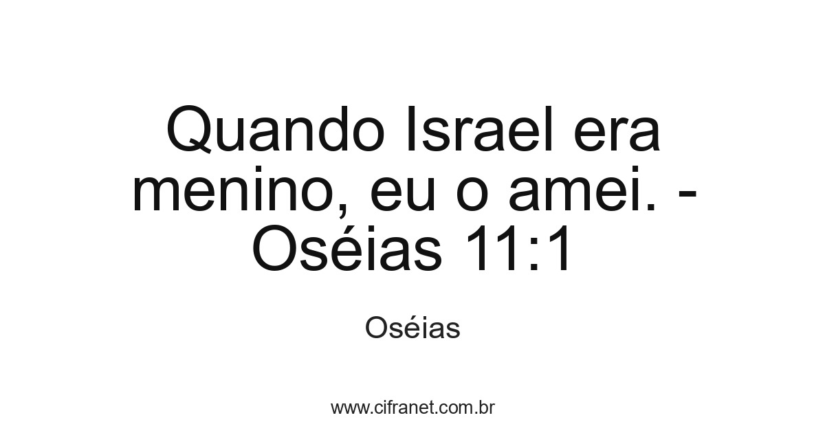 Quando Israel era menino, eu o amei. - Oséias 11:1