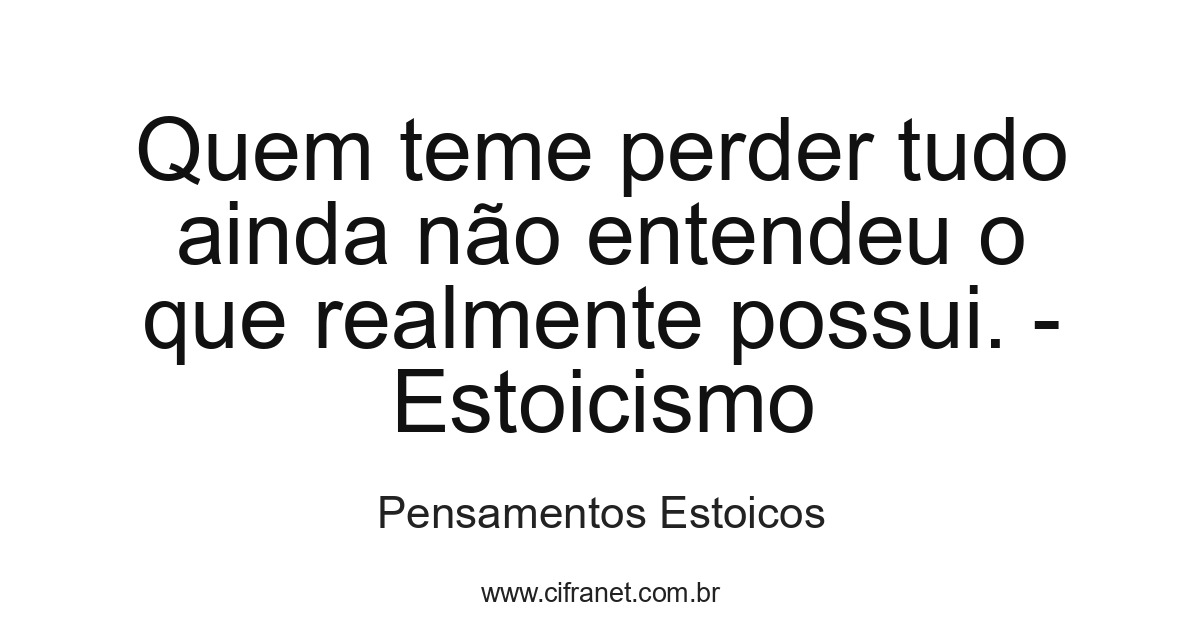 Quem teme perder tudo ainda não entendeu o que realmente possui. - Estoicismo