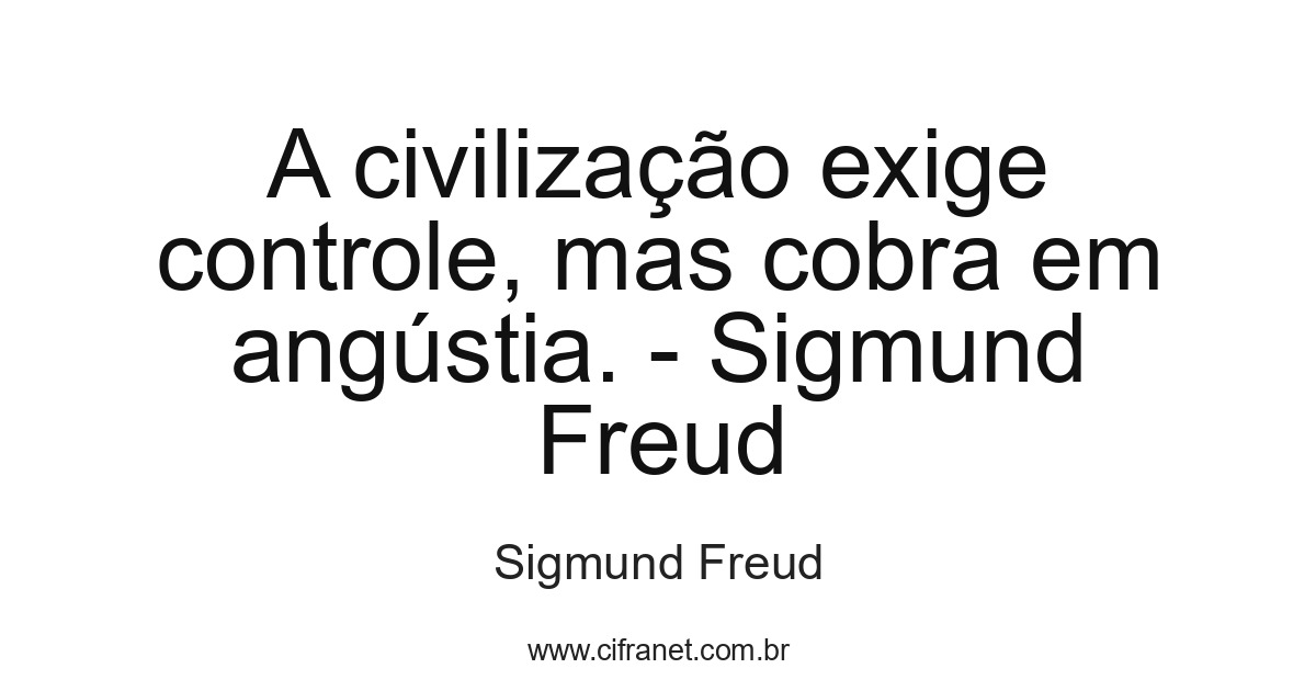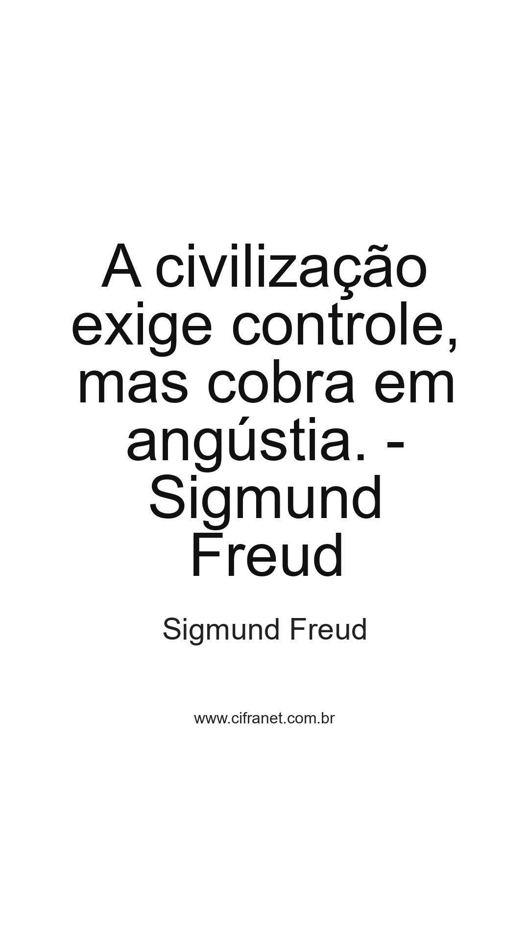 A civilização exige controle, mas cobra em angústia. - Sigmund Freud