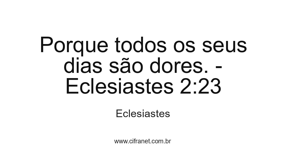 Porque todos os seus dias são dores. - Eclesiastes 2:23