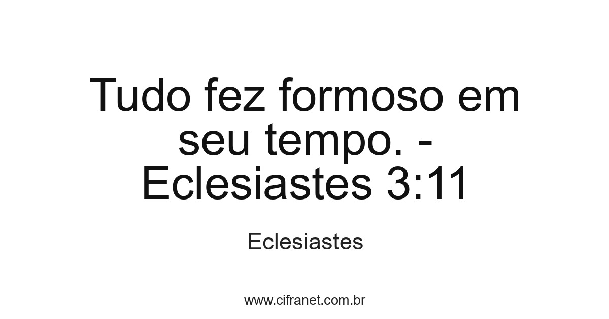 Tudo fez formoso em seu tempo. - Eclesiastes 3:11