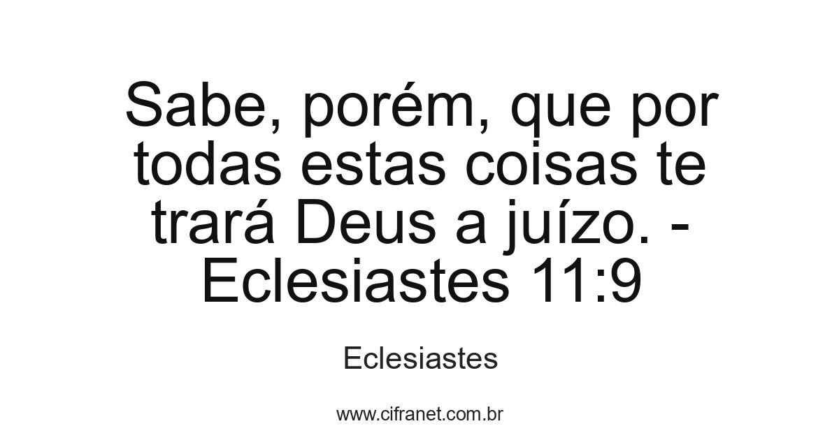 Sabe, porém, que por todas estas coisas te trará Deus a juízo. - Eclesiastes 11:9