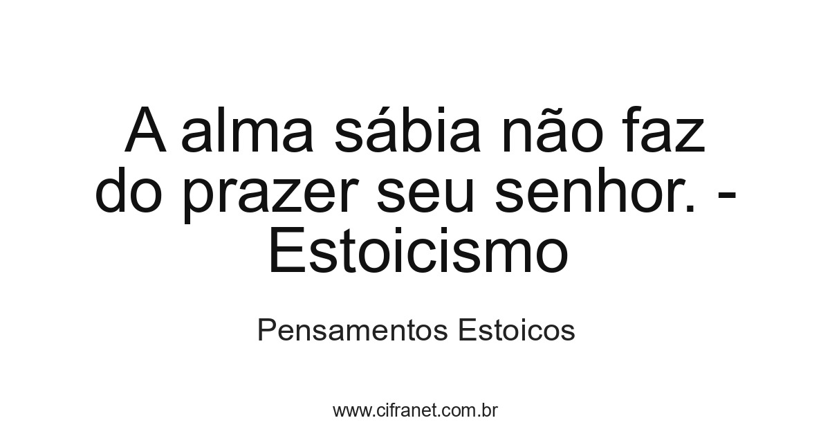 A alma sábia não faz do prazer seu senhor. - Estoicismo