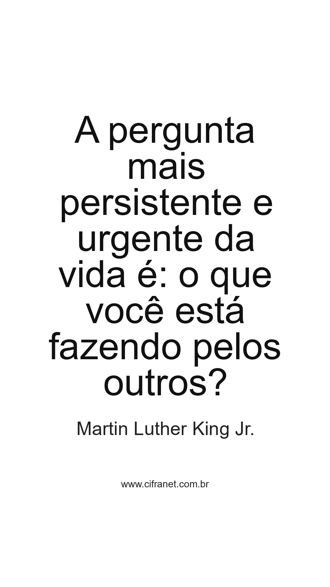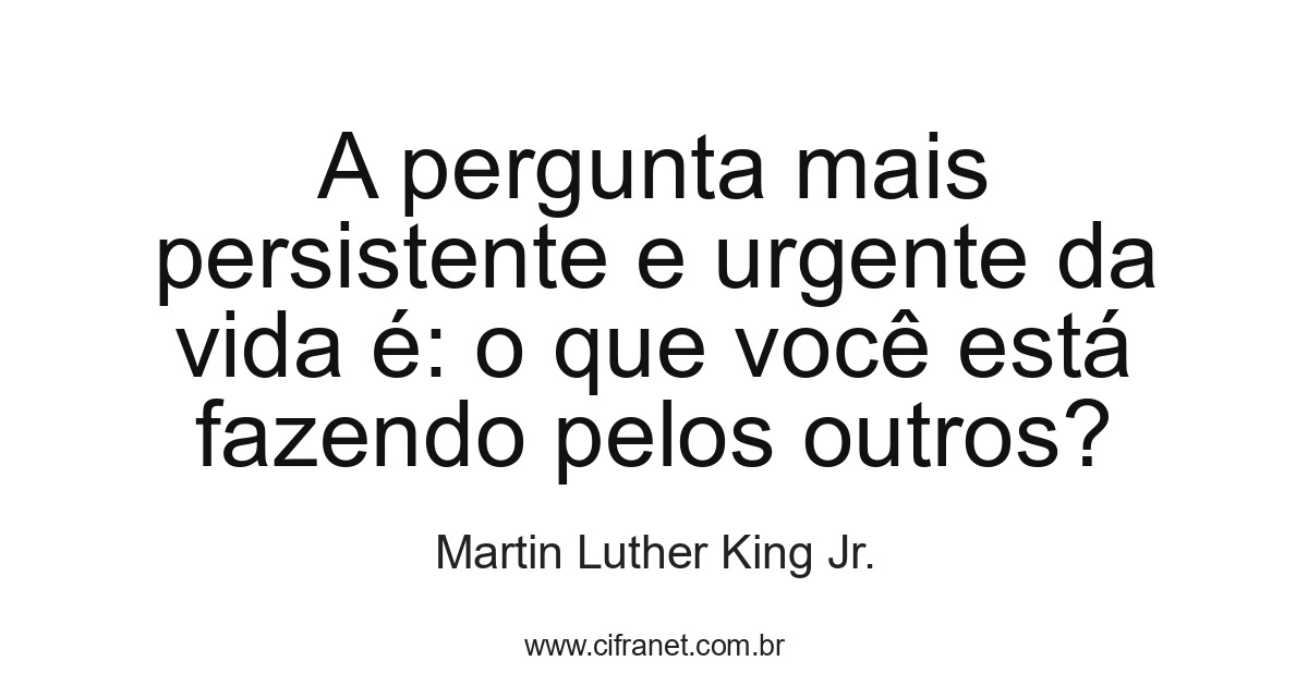 A pergunta mais persistente e urgente da vida é: o que você está fazendo pelos outros?