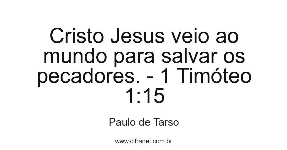 Cristo Jesus veio ao mundo para salvar os pecadores. - 1 Timóteo 1:15