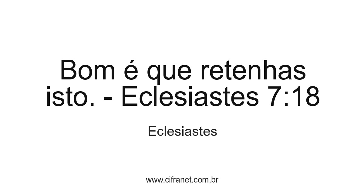 Bom é que retenhas isto. - Eclesiastes 7:18