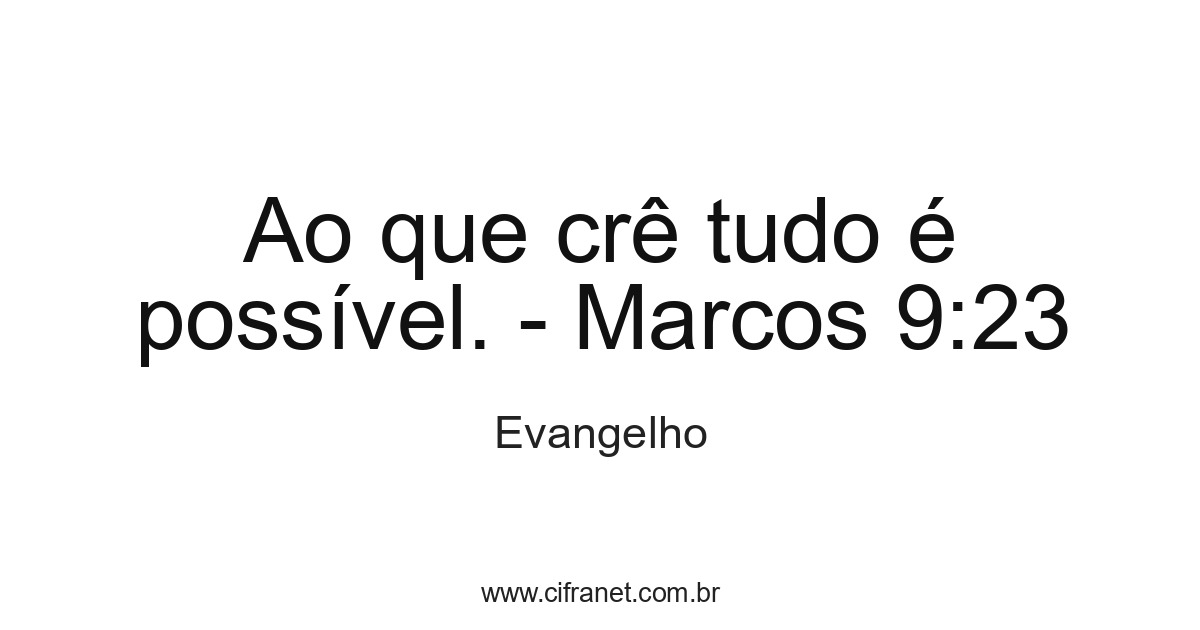 Ao que crê tudo é possível. - Marcos 9:23