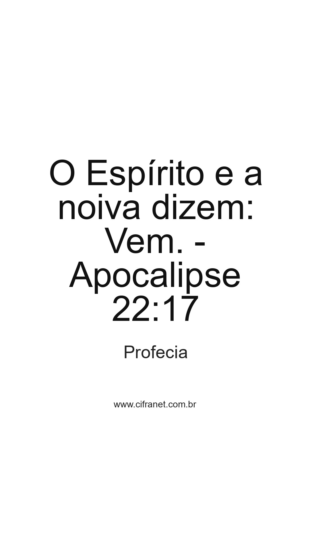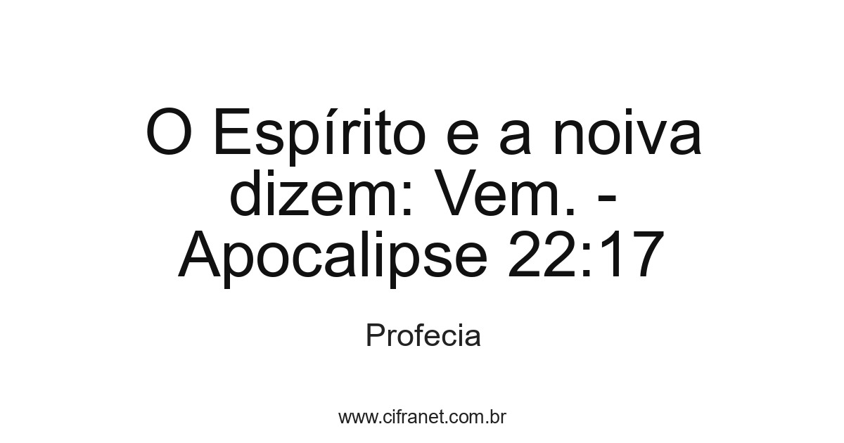 O Espírito e a noiva dizem: Vem. - Apocalipse 22:17