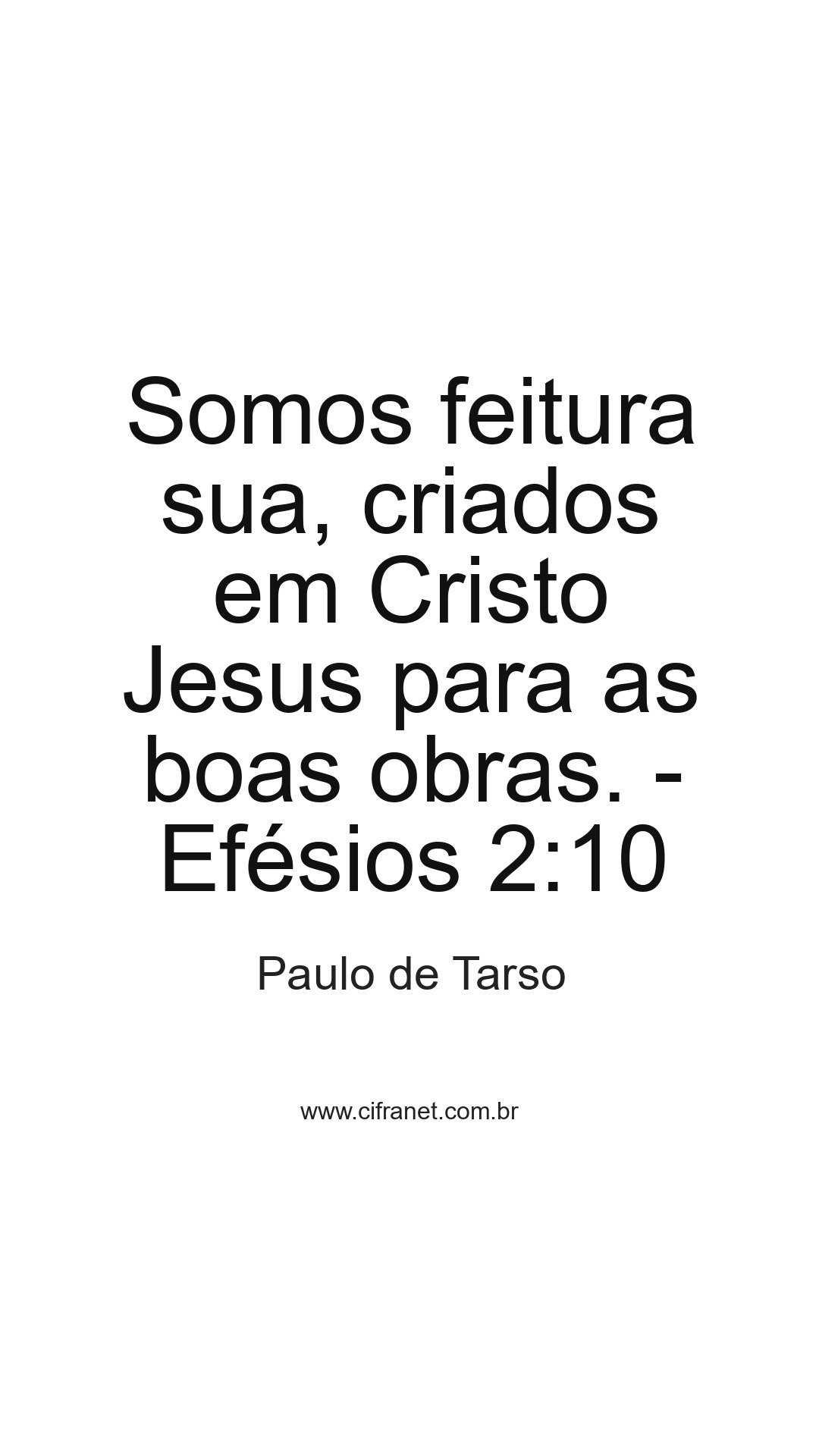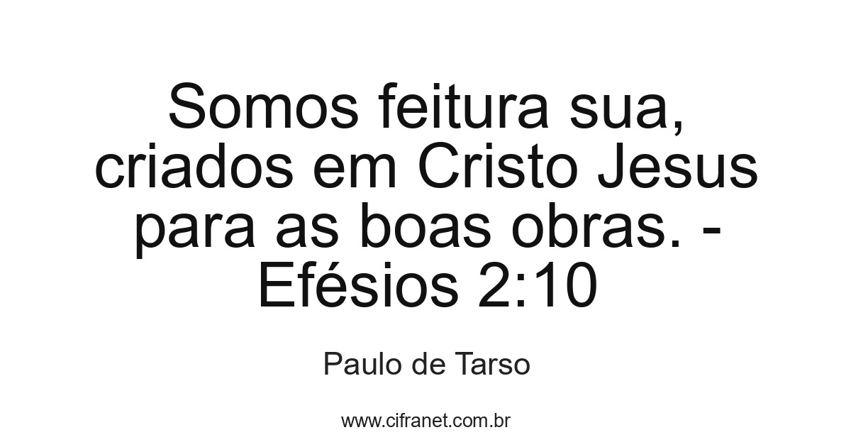 Somos feitura sua, criados em Cristo Jesus para as boas obras. - Efésios 2:10