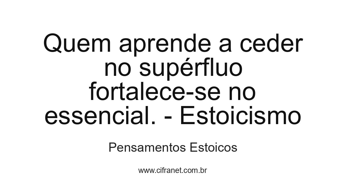 Quem aprende a ceder no supérfluo fortalece-se no essencial. - Estoicismo