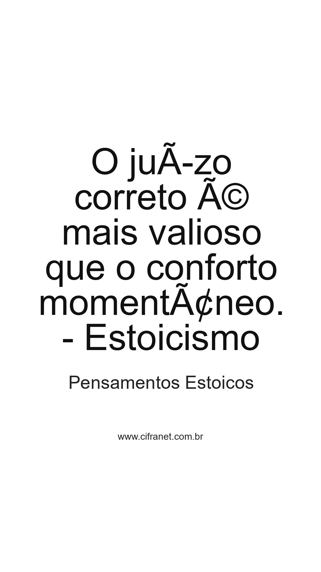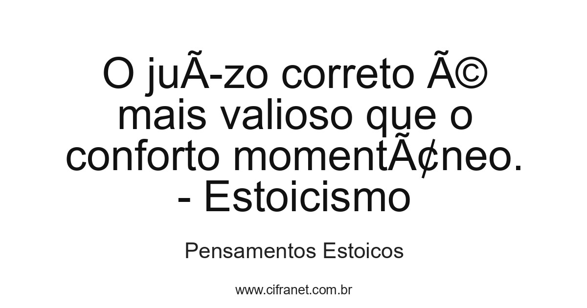 O juÃzo correto é mais valioso que o conforto momentâneo. - Estoicismo