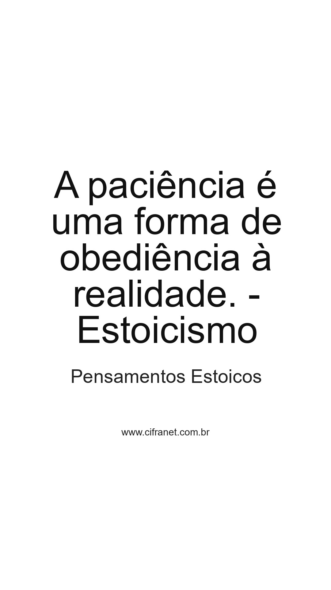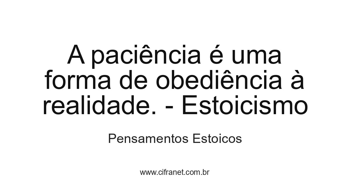 A paciência é uma forma de obediência à realidade. - Estoicismo