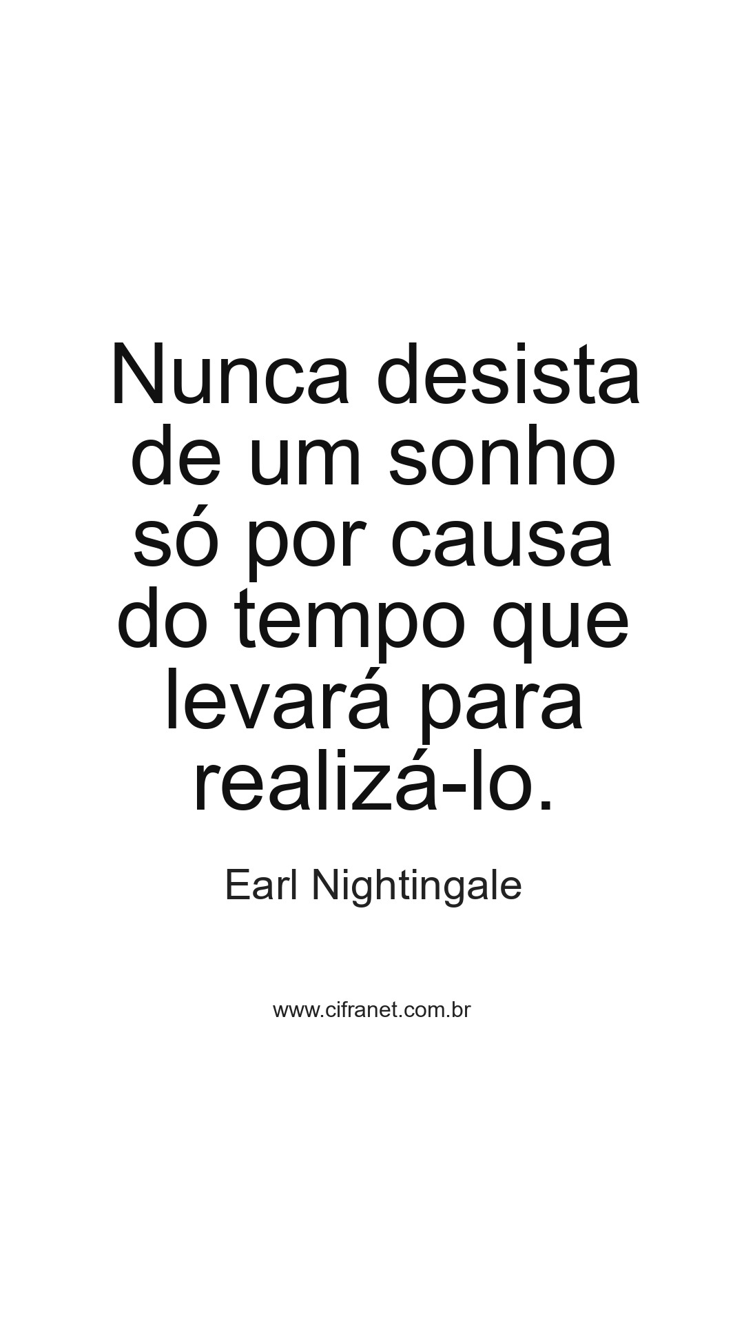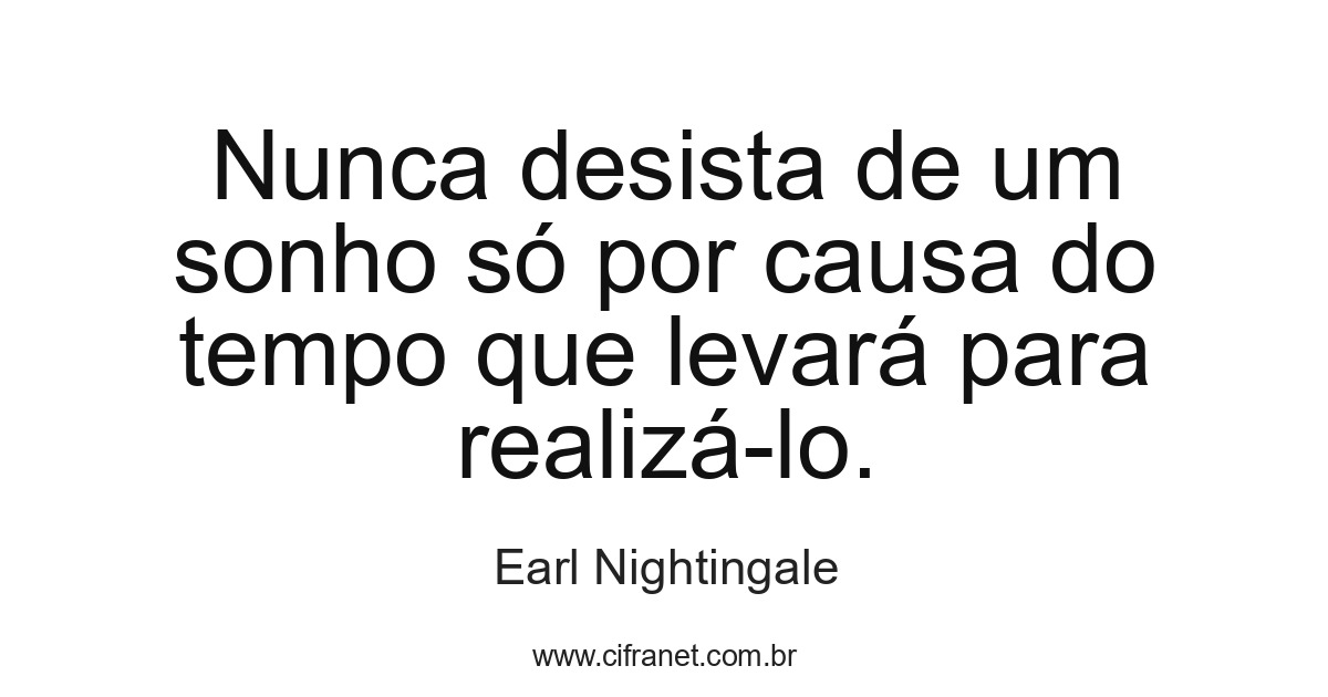 Nunca desista de um sonho só por causa do tempo que levará para realizá-lo.